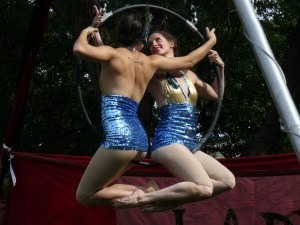 Ambidextrous, three women aerialists, and a male clown who acted as the MC, hail from Chicago. The women’s backgrounds in dance come through in their perfectly choreographed aerials. The man kept the audience engaged with a steady patter, skillful juggling, and unusual unicycle act. Their act was a deliciously varied artist tour de force.
