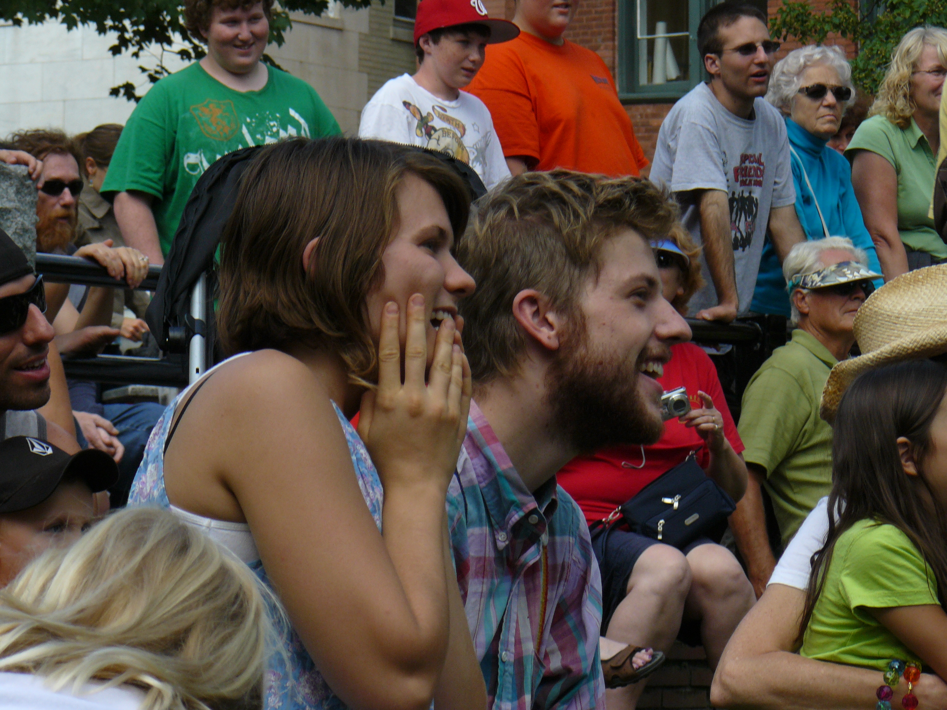 Hilby the Skinny German Juggling Boy was the consummate clown, engaging the crowd in his efforts to perfect one trick after another. The best clowns teach us that we are all clowns, failing repeatedly at the simplest tasks, only to ultimately succeed beyond out wildest expectations. When, after repeated failures, he demonstrated startling juggling skills, we, the audience, were pleased for him. This self-effacing clown won many hearts over this past weekend.