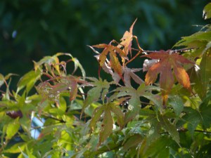 This week I noticed the first leaves just tinged with red. Summer is still very much with us, but Fall is already making itself known. Late summer is a clown, luxuriating in the pleasures of this seductive season, and pointing with sorrow to the frugalities of the coming Autumn. “Dance! Dance!” She seems to say. “Tomorrow may be to late!” Then she winks!