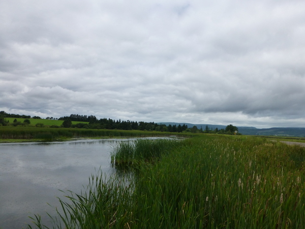 As we drove across the reclaimed marshlands I thought about the progression of peoples across the landscape. The Mi’ Kmaq people were living from the land when the French arrived. The two peoples mostly got along well and intermarried. When the British came, there was a period of coexistence with the French Arcadians, although perhaps not so much so with the Native people. With the expulsion of the Acadians, British law and culture came to dominate the area, and remained dominant until quite recently, when the descendents of the Acadian settlers began to come out of hiding. Now New Brunswick is officially bi-lingual.