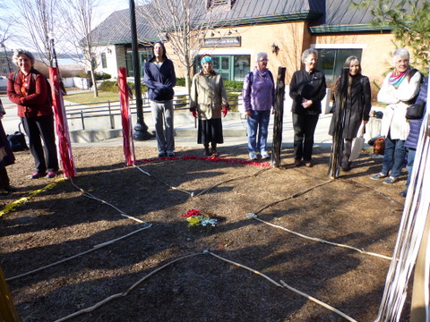 This past week the snow melted, revealing a patch of ground at the site that had been chosen for the construction of the wheel. We were relieved! Early yesterday, we gathered, along with Jennie and Dee’s son, Peter, at the site and constructed the wheel. Dee’s daughter, Wendy, Peter, and Windy’s work colleagues created the eight poles. We are immensely grateful for their aid and support.