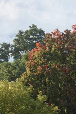 The maple tree outside our office window has turned red, although there remain areas of green and the reds are not at their full intensity yet. A few other trees have begun to turn, yet green still far predominates the landscape. We may be a week away from astronomical fall, but summer shows few signs of moving aside to let the cold season in.