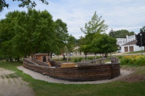 to the settlers who made their watery way to the area. Thankfully the display contained no historically inappropriate cut-outs of Natives in headdresses and loincloths. In fact, there were no Natives at all, which I found both predictable and disturbing. (Oddly, Chicago, just a few miles north and east, has a significant Native population, although they seem to remain invisible to most people in Illinois.)