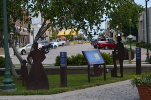 One morning we stopped in a town park adjacent the canal and wandered briefly along the canal path. Nearby were several large, cut-out iron figures that paid tribute