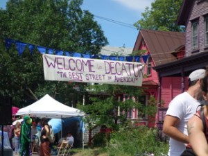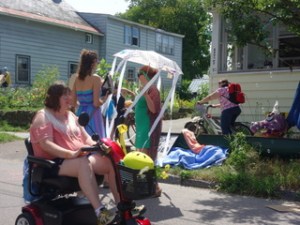 Yesterday was cool and sunny and last night was downright autumnal. Yesterday being Saturday, we were busy: we went to the farmer’s market, Jennie hung a show of her prints at our computer specialists’ store, we attended our local celebration of summer and community (The Ramble), and we ended the day picnicking and walking by the lake.