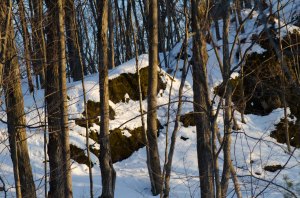 A clear, crisp, bright late January day, deep snow pack melting away at the edges.