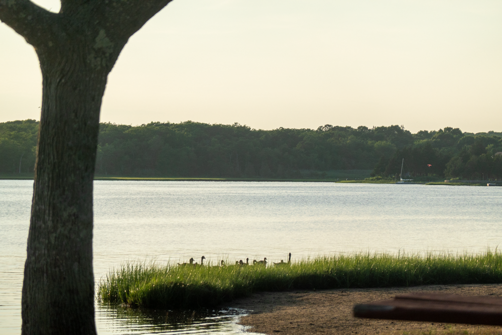At the beach, the goslings are almost full grown and the family appears more at ease passing through the throngs of last warm day beachgoers. They even forage for scraps among the picnic tables and invite handouts from human passers by. Many geese overwinter here so there is less pressure to mature rapidly and migrate.