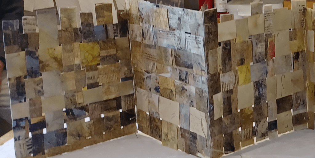Jennie and I have essentially finished the art piece, an artists’ book, which will go into the “Collaborations” group show in a couple of weeks. I got together with some of the other exhibiting artists last night; some have finished their pieces while others are madly trying to. It seems that much of the work will reference, abet subtlety, the present madness in our country.