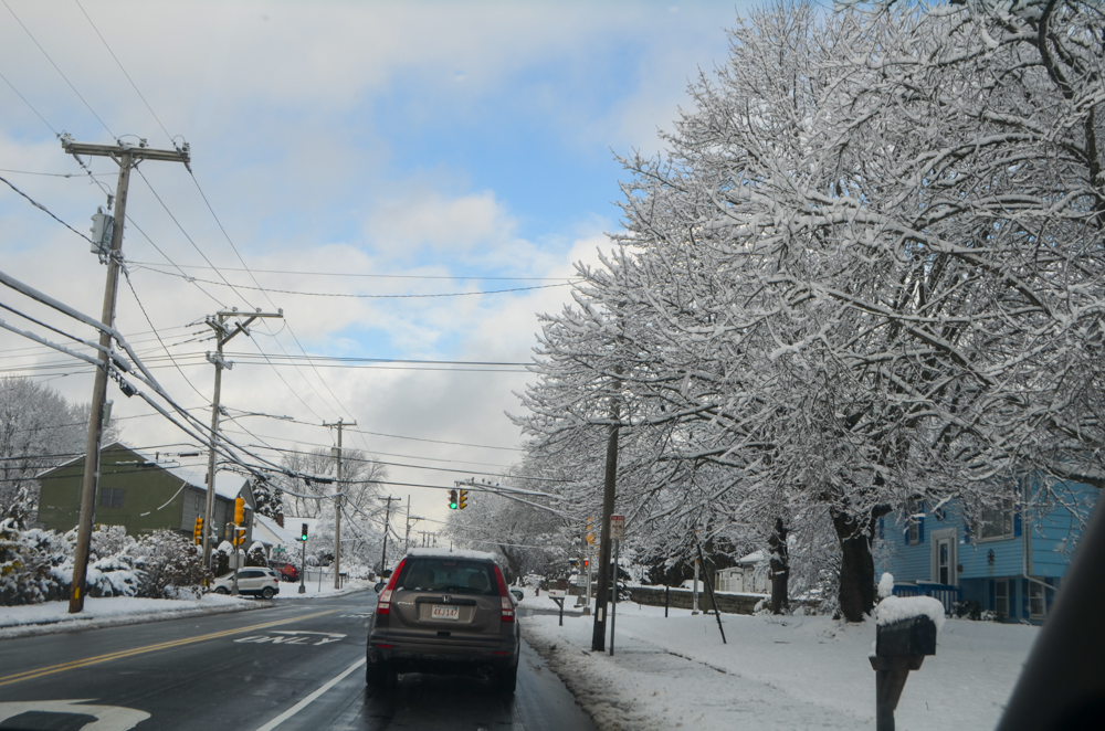 A chilly day, the cloudless sky casting bright sunlight off a spreading of snow. Sunday night we had enough snow that we had to have the driveway plowed for the first time this year. The snow was heavy and dense, so it stuck to the trees, making for a truly magical morning landscape. A few trees lost major limbs but we managed to keep power.